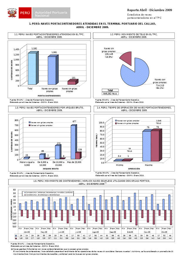 Estadísticas de naves atendidas con grúas pórtico – Abril a Diciembre 2009