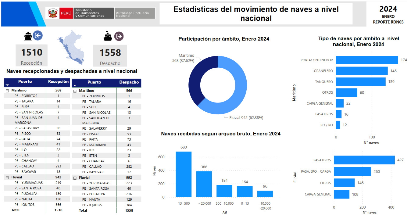 En esta sección se encontrará los reportes mensuales respecto a la información estadísticas del Sistema Portuario Nacional.