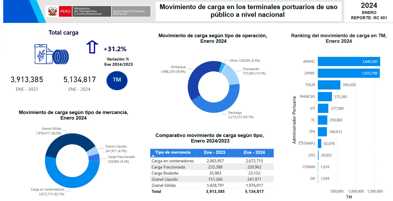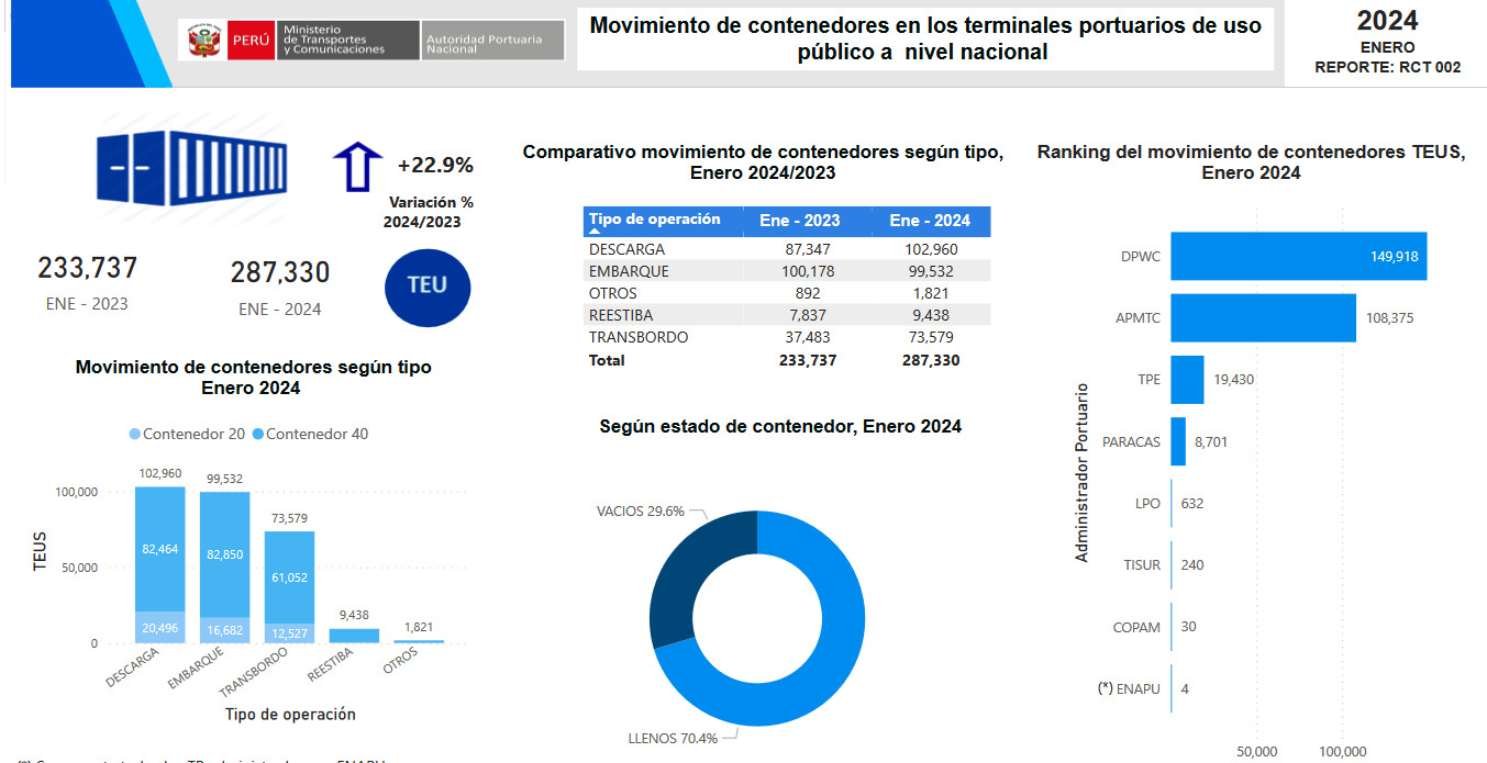 En esta sección se encontrará los reportes mensuales respecto a la información estadísticas del Sistema Portuario Nacional.